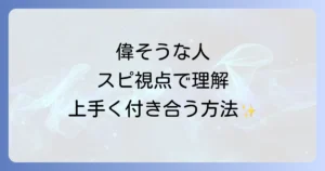 職場や友人関係、あるいは家族の中に「偉そうな人」がいて、どう接すれば良いか悩んでいませんか? 彼らの言動に振り回されたり、不快な気持ちになったりすることは少なくありません。しかし、スピリチュアルな視点から見ると、偉そうな人の存在には深い意味が隠されていることがあります。本記事では、偉そうな人のスピリチュアルな特徴や心理、そして彼らと上手に付き合いながら、あなた自身が心の平安を保ち、成長するための方法を徹底解説します。彼らの行動の裏にある真意を理解し、より良い人間関係を築くためのヒントを見つけていきましょう。