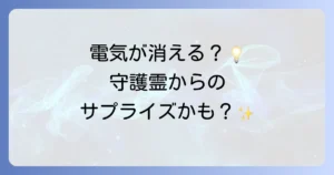 電気が勝手に消える現象は、守護霊や高次元の存在があなたに何かを伝えようとしているサインである可能性があります。彼らは直接言葉で語りかけることができないため、電気のような身近なエネルギーを通じてメッセージを送ることがあるのです。特に、あなたが困難な状況に直面している時や、重要な決断を迫られている時にこの現象が起こる場合、それは守護霊からの強力なサポートや導きを示しているかもしれません。