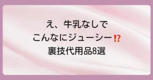 「牛乳の役割はわかったけど、じゃあ代わりに何を入れればいいの?」そんな疑問にお答えします。実は、あなたの家の冷蔵庫や食品庫にある身近な食材が、素晴らしい代用品になるんです。ここでは、特におすすめの8つの代用品を、それぞれの特徴やコツとあわせてご紹介します。