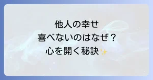 - 他人の幸せを喜べないのは、自己肯定感の低さや比較、現状への不満が原因。