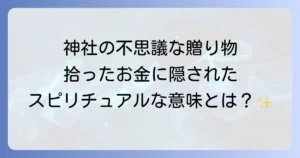 神聖な場所である神社で、ふと足元に目をやると、きらりと光る小銭や紙幣が落ちているのを見つけることがあります。この偶然とも思える出来事に、あなたはどんな意味を感じるでしょうか?単なるラッキーな出来事として片付けてしまうのは、もったいないかもしれません。実は、神社でお金を拾うことには、深いスピリチュアルなメッセージが込められているとされています。