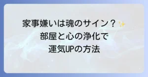 家事が嫌いだと感じることはありませんか?毎日繰り返される家事にうんざりしたり、なぜかやる気が出なかったりする時、それは単なる「面倒くさい」という気持ちだけではないかもしれません。もしかしたら、あなたの心や部屋が発するスピリチュアルなメッセージが隠されている可能性もあります。本記事では、家事嫌いのスピリチュアルな意味を深く掘り下げ、部屋と心の両方を浄化して運気を高める具体的な方法をご紹介します。