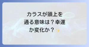カラスが頭上を低空飛行するのは、「見つめ直しが必要」というサインです。これは、あなたが理想とする未来に近づくために、現状を再評価し、改善点を見つける良い機会であることを示しています。決して悪い意味ではなく、自己成長を促すポジティブなメッセージです。