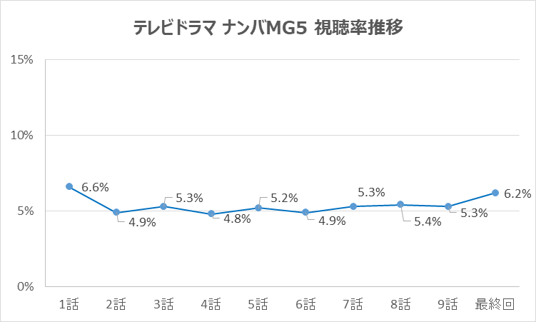 『ナンバMG5』の視聴率は、放送開始時には一定の期待が寄せられていましたが、その後のエピソードでは徐々に低迷し、平均視聴率は5.4%にとどまりました。