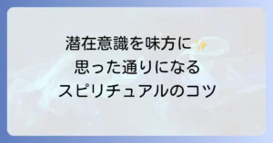 自己観察を通じて自分の思考癖や感情癖を把握し、ネガティブな思考パターンや習慣を書き換えるアプローチも有効です。 瞑想やマインドフルネスで心を静め、雑念を取り除くことも、潜在意識にアプローチしやすくなるコツです。