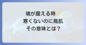 気温が低いわけでもないのに、突然ゾクゾクと鳥肌が立つ経験はありませんか? その不思議な感覚に、もしかしたら何か特別な意味があるのではないかと感じている方もいるかもしれません。実は、この「寒くないのに鳥肌が立つ」現象は、スピリチュアルな世界からの大切なメッセージや、あなたの魂が発するサインである可能性を秘めているのです。本記事では、この神秘的な現象が持つスピリチュアルな意味を深く掘り下げ、あなたの人生に役立つメッセージの受け取り方まで詳しく解説します。あなたの体が発するサインの真の意味を理解し、より豊かな人生を歩むためのヒントを見つけていきましょう。