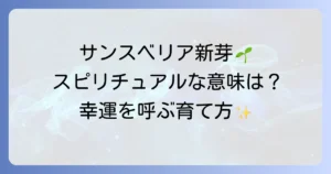 観葉植物として人気のサンスベリアに、新しい芽が出てきたとき、あなたはどんな気持ちになりますか?単なる植物の成長と捉えるだけでなく、実はその新芽には深いスピリチュアルなメッセージが込められていることをご存じでしょうか。新しい命の誕生は、私たち自身の人生における「新しい始まり」や「成長」のサインとして受け取られることがあります。本記事では、サンスベリアの新芽が持つスピリチュアルな意味を詳しく解説し、その力を最大限に引き出すための育て方や風水的な置き場所、さらには新芽が出ない場合や枯れてしまった場合の解釈まで、幅広くご紹介します。あなたのサンスベリアが、より豊かな幸運を運んでくれる存在となるよう、ぜひ参考にしてください。