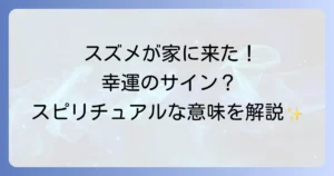スズメがあなたの家に迷い込んできた時、それは単なる偶然ではないかもしれません。スピリチュアルな世界では、スズメは古くから幸運や吉兆を運ぶ使者として、私たちに大切なメッセージを伝えていると考えられています。その小さな体には、大きな意味が込められているのです。