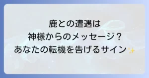 また、鹿との出会いは「人生の転換期」が訪れていることを告げるサインでもあります。 これまでの状況が変化し、新しいステージへと進む準備が整ったことを示しているのです。この時期には、これまで温めてきた計画や夢が現実のものとなる可能性が高まります。変化を恐れず、前向きな気持ちで新しい一歩を踏み出すことが重要です。